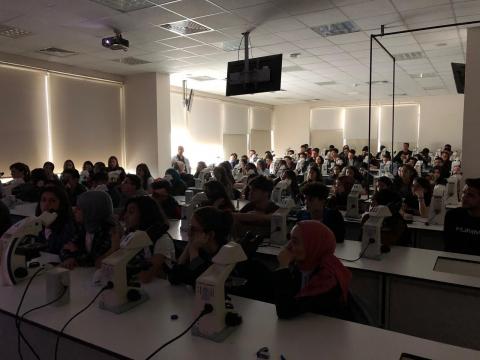 Mikrobiyoloji pratik dersinde mikroskop sık kullanılmaz fakat kullanıldığı takdirde hocalarımız mikroskopları hazırlar ve her öğrenci mikroskopları gezerek örnekleri görür.