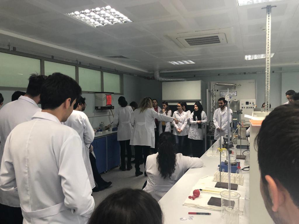 Biyokimya: Öğretim üyesinin yaptığı deney sonrasında , yapılabilecek deneyleri öğrenciler de yapıyor ve sonuçları gözlemleyip not alıyor.